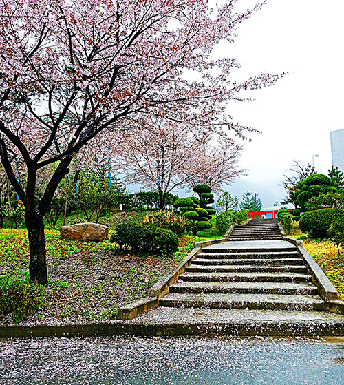 봄비가 오자 온통 천지사방에 벚꽃 잎이 흘러넘친다. 마치 연어 떼가 산란을 위해 모천하려고 계단을 거슬러 올라가는 것만 같다. 아무리 많은 장애물이 있어도 아무리 먼 거리여도 처음 태어났던 강의 물 냄새를 기억했다가 돌아오는 연어 떼처럼, 바닥에 떨어져버린 꽃잎들이 한때 눈부시게 빛났던 사월의 꽃나무를 잊지 못해 산란을 마치고도 다시 모천하고 있는 것처럼 보인다.