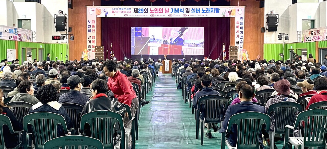 [백세시대 = 박아영 기자] 대한노인회 경남 김해시지회(지회장 이갑순)는 10월 31일 김해문화체육관에서 ‘제29회 노인의날 기념식 및 실버노래자랑’을 개최했다.