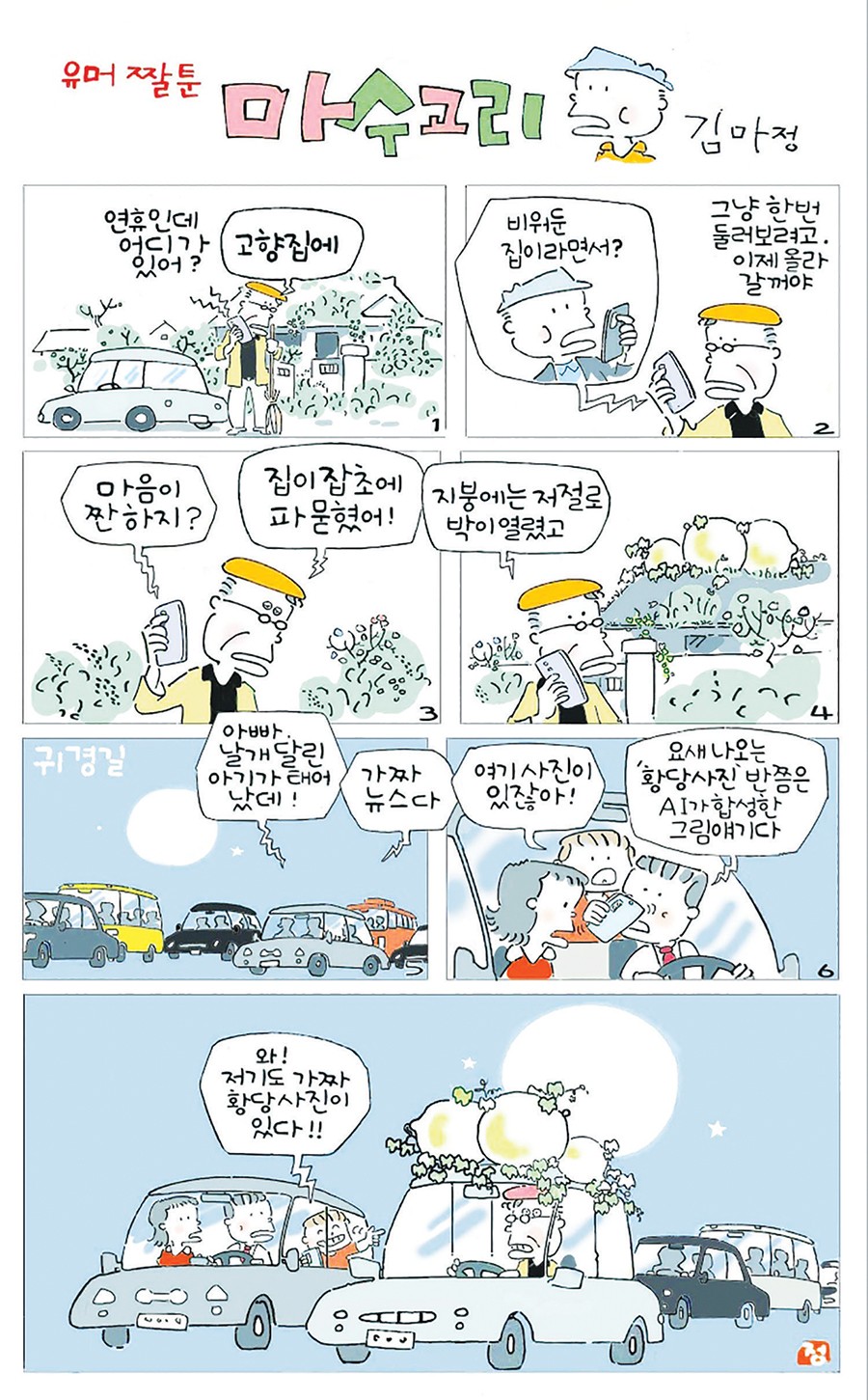 이전 기사보기 다음 기사보기 (637) 마수고리 [김마정] 글자크기 설정 가 가 기사의 본문 내용은 이 글자크기로 변경됩니다. 스크롤 이동 상태바 원로화가들이 전하는 세상돋보기 (637) 마수고리 [김마정] 김마정 입력 2025.11.21 13:32 호수 996 댓글 0 김마정 efg@100ssd.co.kr 다른기사 보기 저작권자 © 백세시대 무단전재 및 재배포, AI학습 및 활용 금지 개의 댓글 댓글입력 권한이 없습니다. 회원로그인 댓글 정렬 최신순 추천순 답글순 BEST댓글 BEST 댓글 답글과 추천수를 합산하여 자동으로 노출됩니다. 닫기 더보기 댓글삭제 삭제한 댓글은 다시 복구할 수 없습니다. 그래도 삭제하시겠습니까? 비밀번호 댓글수정 댓글 수정은 작성 후 1분내에만 가능합니다. 본문 / 400 비밀번호 내 댓글 모음 닫기